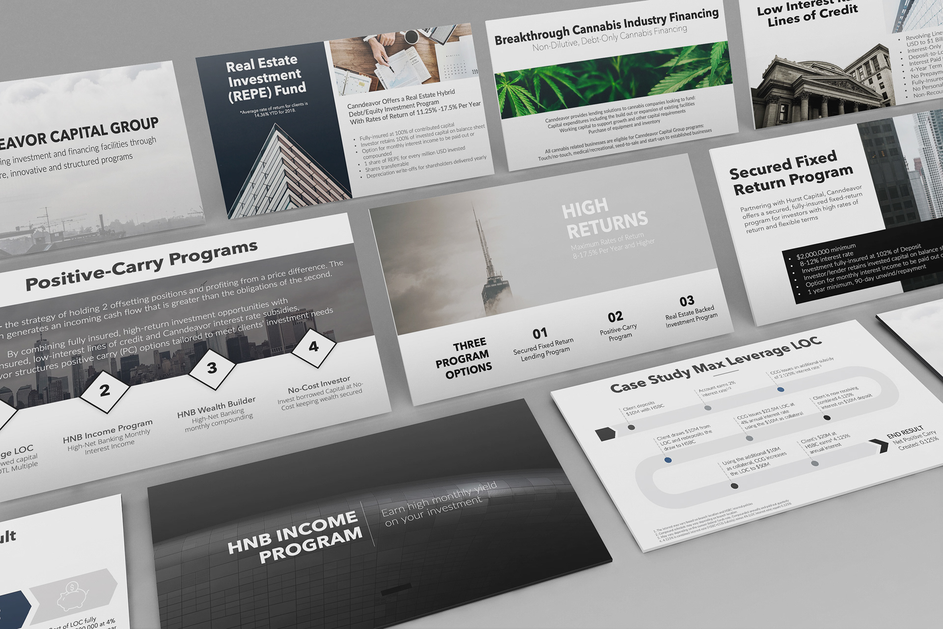 Canndeavor Capital Group is a boutique investment firm based in Hollywood, California, offering secure and structured financial programs for borrowers and investors worldwide. Their services span short-, medium-, and long-term investment opportunities, lines of credit, and equity-based match funding across multiple industries.