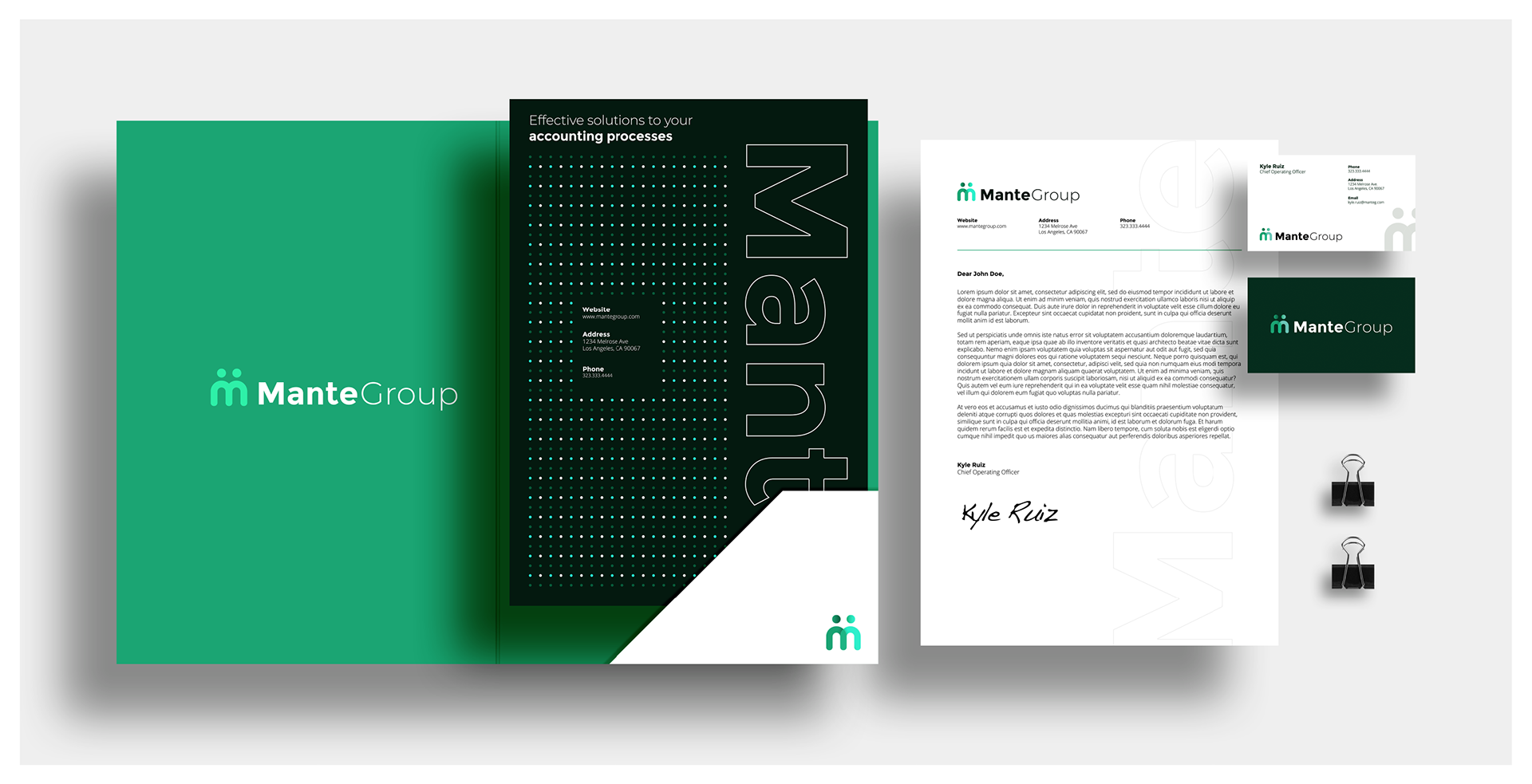 The final brand direction positioned Mante Group as professional, approachable, and dependable. While the logo remained simple, its concept—an “M” formed by two figures representing the consultant and the client—reinforced the company’s message of partnership and support.